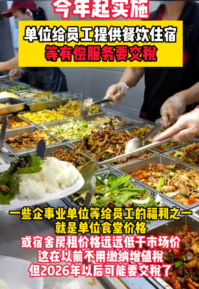 2026年1月1日起,增值税法正式落地,删除了“单位为员工提供服务免税”条款,明确单位向员工提供餐饮、住宿等有偿服务需缴增值税,一般纳税人6%,小规模3%,新政初衷是规范税收征管,却引爆全网争议。