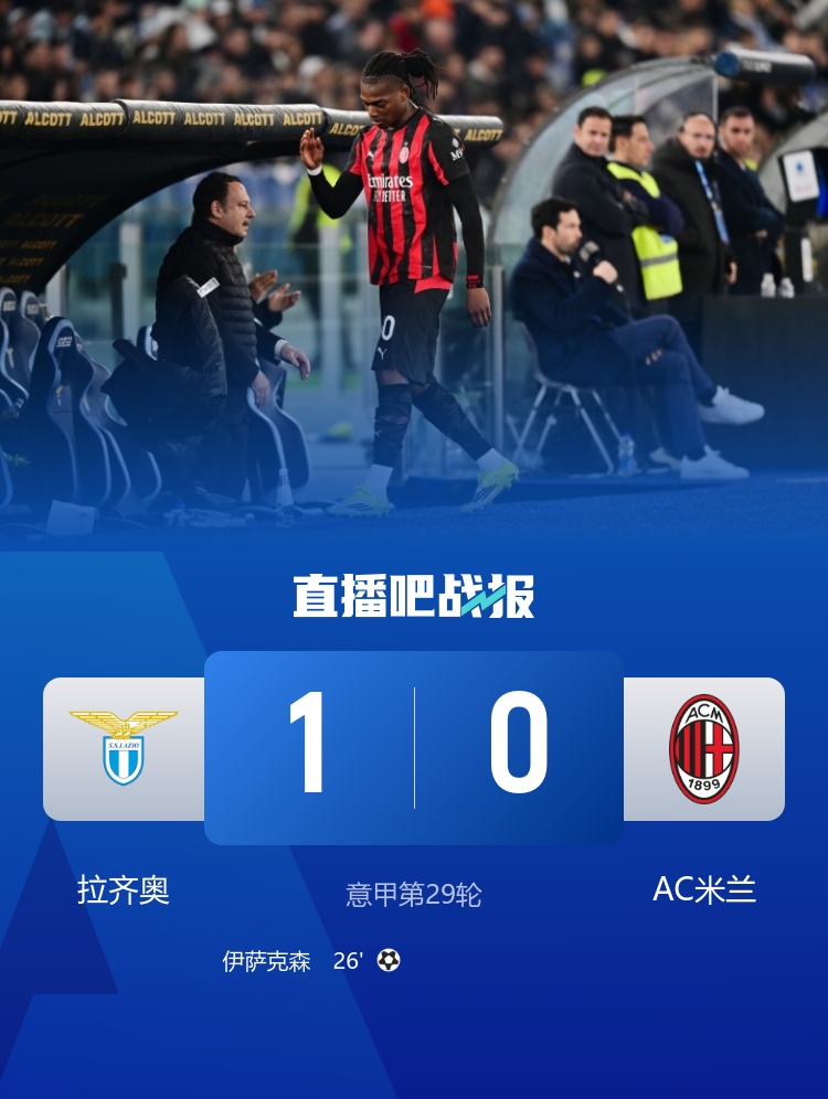 米兰全场低迷,莱奥换下时拒绝拥抱并推开主帅;米兰错失追分良机,距榜首国米8分。