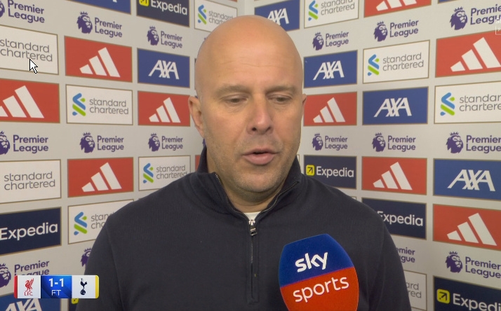 利物浦本轮1-1遭热刺绝平。赛后,主教练斯洛特在BBC采访中表达了失望。